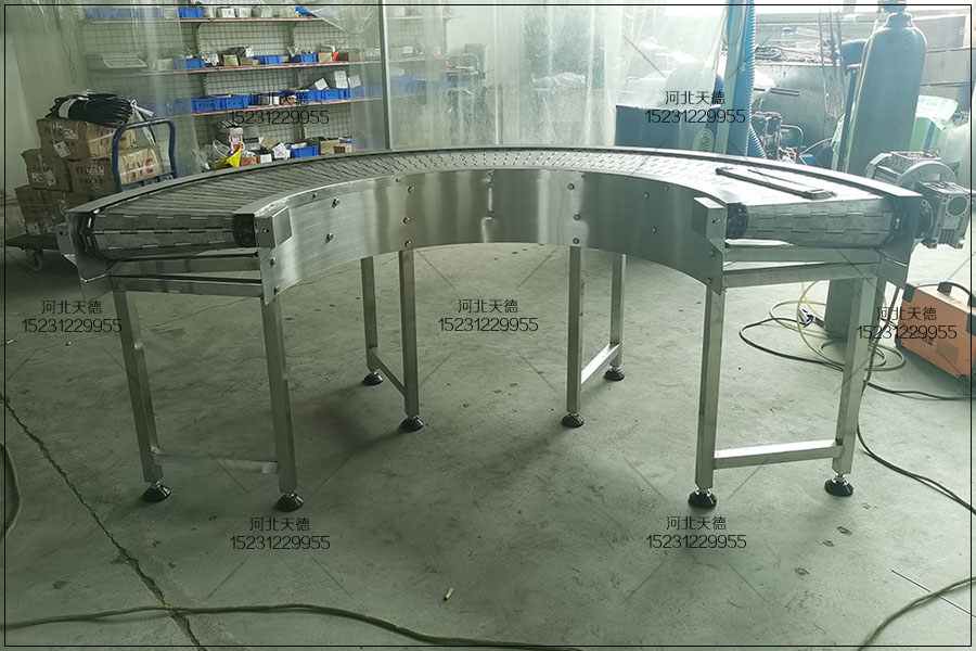 5.平頂鏈轉彎機:采用平頂鏈作為載體,輸送范圍窄,可以輸送軌道隨意性好。
