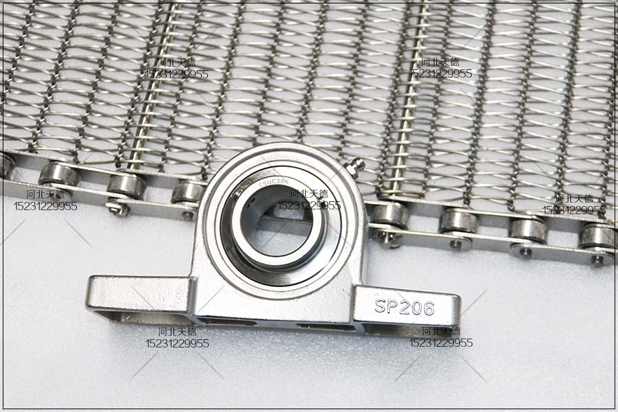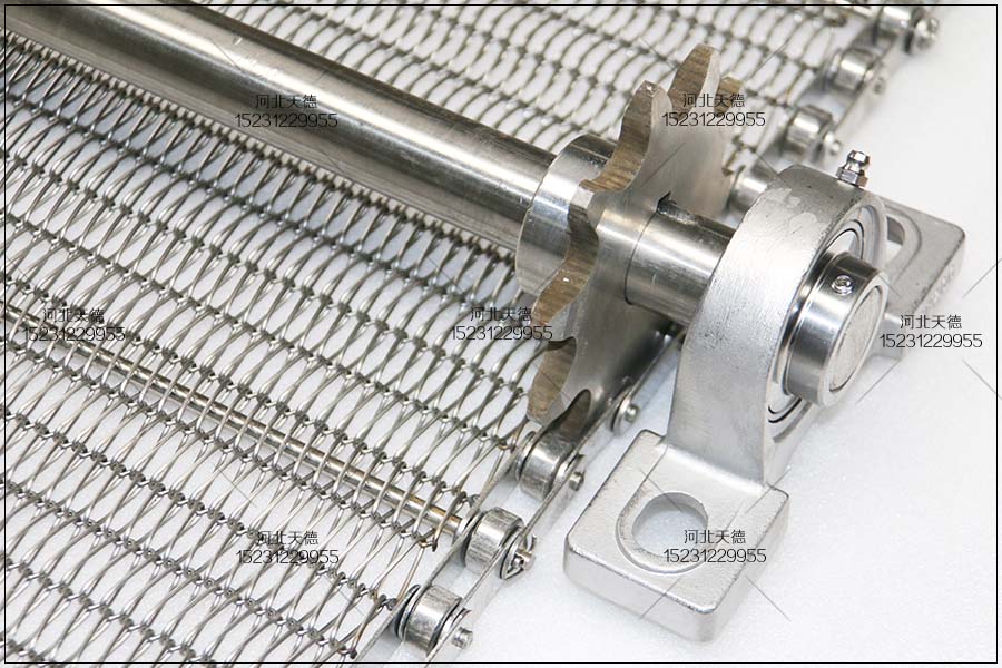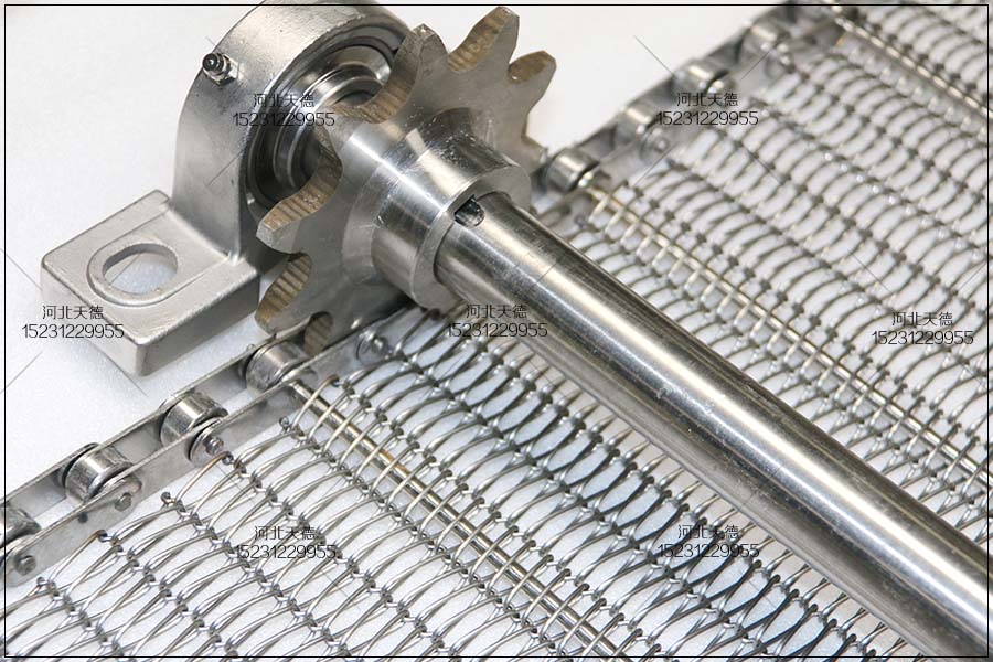 鏈條式不銹鋼輸送帶的寬度為900毫米,長(zhǎng)度為40米,輸送鏈條的節(jié)距為38.1毫米,桿直徑為8毫米,3節(jié)一根,絲徑為1.5毫米,孔為10*15毫米,不銹鋼304材質(zhì)。我們還可以采用鋼板折彎打孔輸送帶,但是相比之下這種板式的不如鋼絲編織的這種透氣和烘干的效果好。
