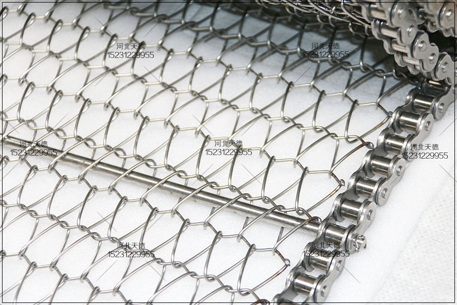 雙股加固型輸送網帶:此不銹鋼輸送帶由雙股左螺旋或雙股右螺旋盤條與一根串條銜接而成,金屬網帶拼接便利,編織的網眼通常小于單股加強編織的網眼,織造結實,不會變形,維修與保養便利。 使用:能用于高溫的主動流水,傳送重物,機械工業上零件的熱處理,各種教大物體的烘干。