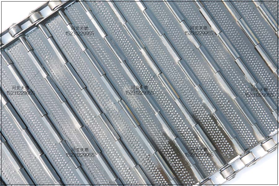 河北天德絲網制品有限公司生產鏈板輸送機、鏈板輸送帶、不銹鋼輸送機、網帶提升機、轉彎機等耐高溫輸送帶。