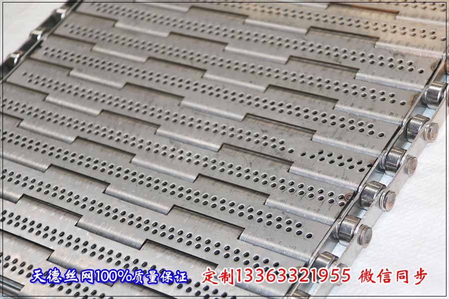 我們還要想到輸送物品重量是不是太過于重。之前有客戶在我天德公司訂購過草莓清洗機用的不銹鋼輸送帶,這位客戶和我反應之前購買的鏈條輸送網帶因為網面不太平整(鋼絲編織的網面會有輕微凹凸)所以容易對輸送面的草莓表面因為輕微磕碰導致損傷,所以要更換一種網面平整的輸送帶。建議客戶訂購不銹鋼輸送帶為沖孔式鏈板,這樣就能防止因為網面不平導致刮傷物品。在訂購不銹鋼輸送帶的時候一定要根據輸送物品和使用環境等各方面因素來選用合適的輸送帶。