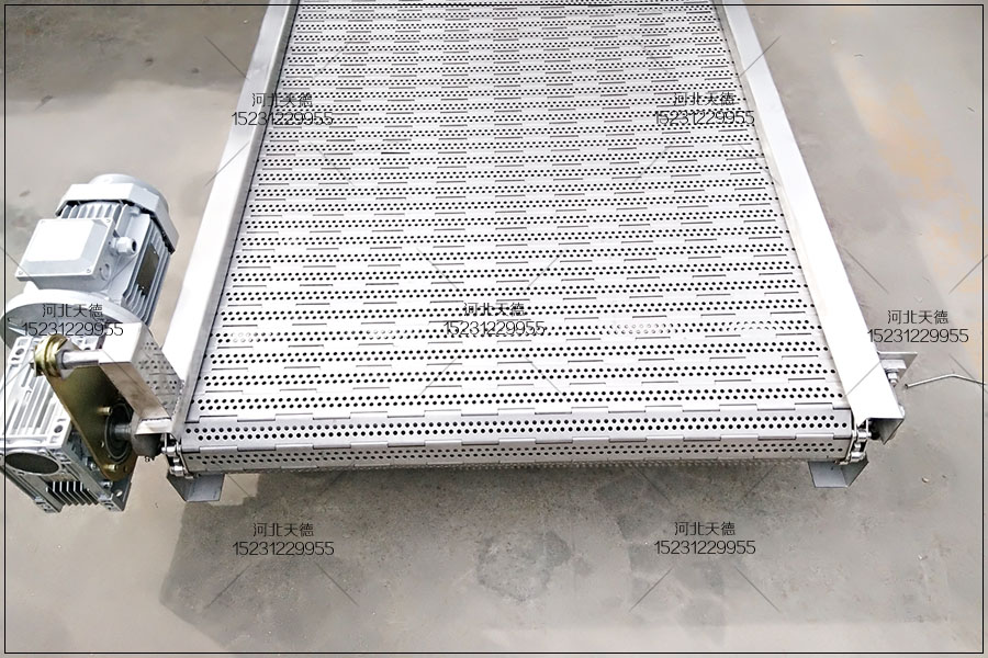 河北天德絲網制品有限公司生產鏈板輸送機、鏈板輸送帶、不銹鋼輸送帶:15231229955 http://www.skyyue.cn/